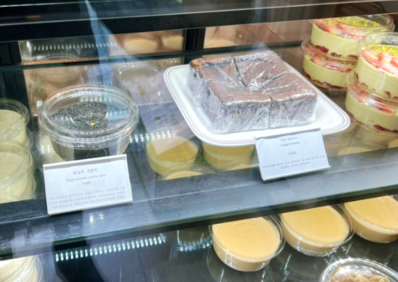 쇼케이스 안쪽에는 떠먹케이크 위주의 디저트들이 있고,