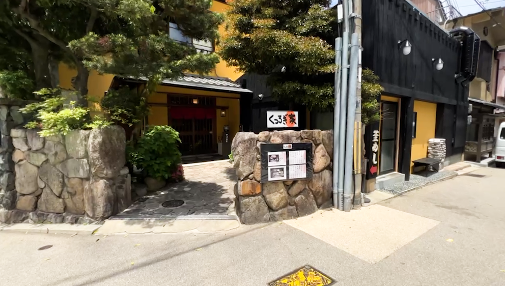 돌담이 있는 노란 2층집이 쿠츠로기야에요.